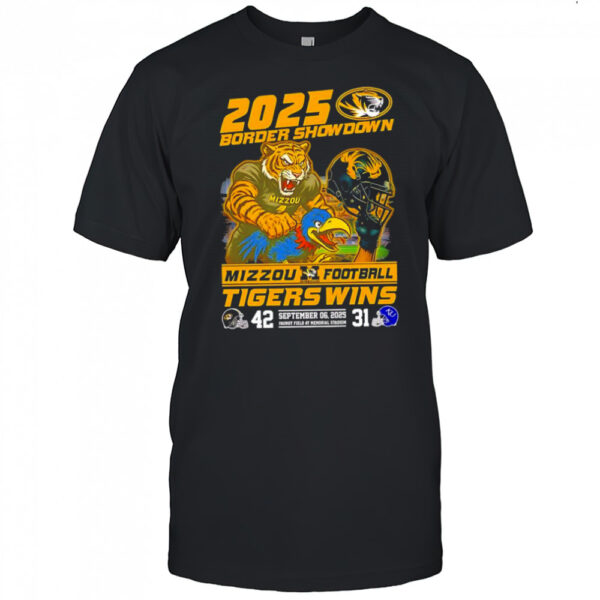 2025 Border Showdown Missouri Tigers vs Kansas Jayhawks 42-31 Faurot Field Memorial Stadium shirt, hoodie, sweater, longsleeve and ladies t-shirt