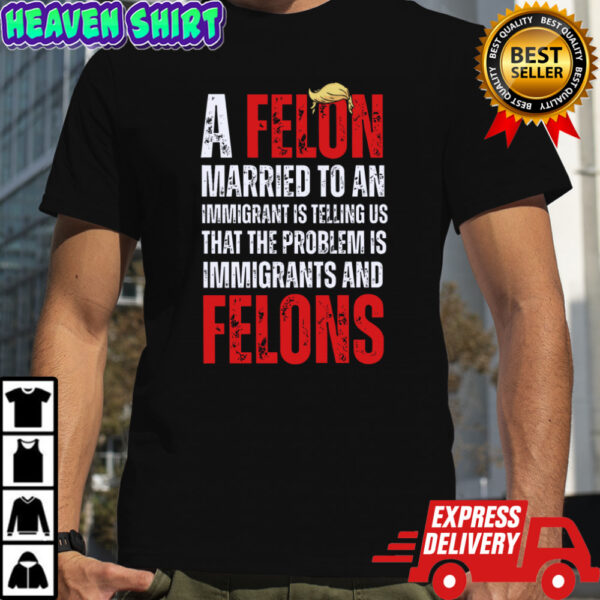 A felon married to an immigrant is telling us that the problem is immigrants and felons Anti Trump shirt, Classic, Women’s, Long Sleeved, Sweatshirt and Hoodie