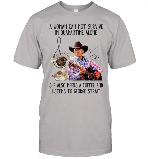 A Woman Can Not Survive In Quarantine Alone She Also Needs Coffee And George Strait T-Shirt, hoodie, sweater, longsleeve and ladies t-shirt