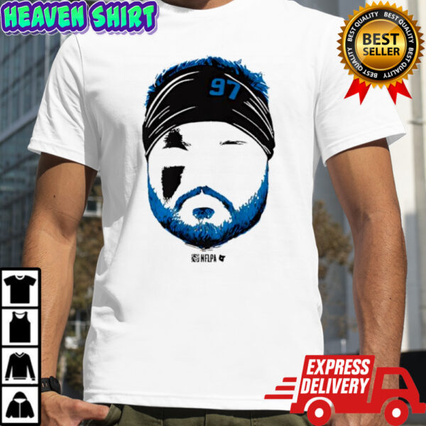 But this shirt is more than just a garment; it’s a statement. When you wear the Aidan Hutchinson Blank Face number 97 shirt, you’re not just wearing a jersey – you’re embodying a winning mindset. Let the world know that you stand with Hutchinson, a force to be reckoned with. Whether you’re cheering from the stands or hitting the streets, this shirt is your ultimate companion. So, why wait? Join the movement, show your support, and unleash your inner champion with the Aidan Hutchinson Blank Face number 97 shirt today!