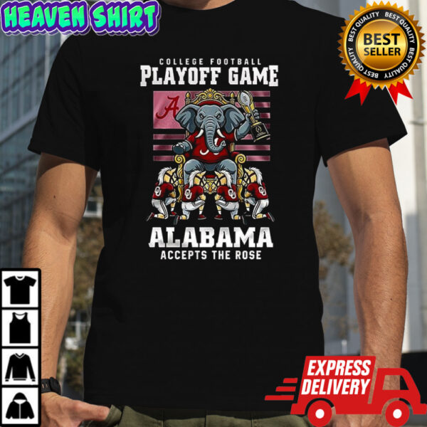 Embrace the excitement and rally behind your team in style with the Alabama Crimson Tide College Football Playoff game Alabama accepts the Rose 2026 mascot shirt! Whether you’re cheering from the stands or watching from home, this shirt is the perfect way to showcase your unwavering support for the Crimson Tide. Donning this shirt isn’t just about representing a team; it’s about being part of a community united by passion and dedication. Elevate your game day experience and stand out among the crowd with this unique piece of fan gear. Don’t miss out on the opportunity to be a true Crimson Tide supporter – grab your shirt today and gear up for victory!