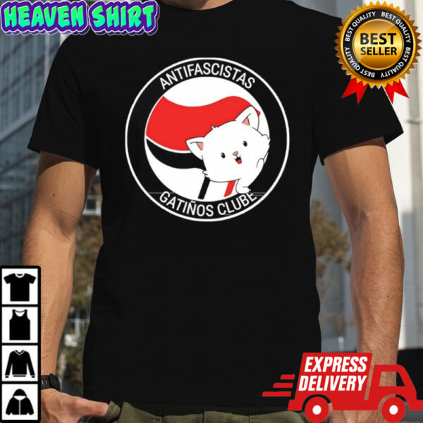 Looking for a purr-fect way to showcase your love for feline activism? Look no further than our exclusive Antifascistas gatiños clube logo cat shirt. This iconic shirt is not just a piece of clothing; it’s a statement. Crafted with the finest materials, this shirt ensures both comfort and style. The striking logo design featuring adorable cats embodies the spirit of unity and resistance. Let your outfit speak volumes about your passion for social justice and love for our furry friends. Whether you’re out for a casual stroll or attending a rally, this shirt will make you stand out in the crowd with its bold and meaningful design.