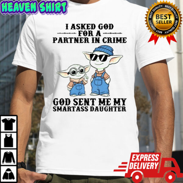 Baby Yoda I asked God for a partner in crime God sent me my smartass daughter shirt, Classic, Women’s, Long Sleeved, Sweatshirt and Hoodie