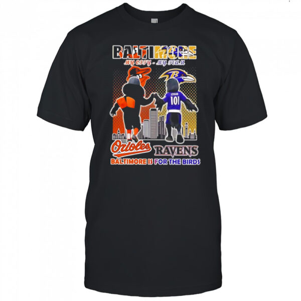 Baltimore Orioles and Baltimore Ravens mascots my city my team Baltimore is for the birds shirt, hoodie, sweater, longsleeve and ladies t-shirt