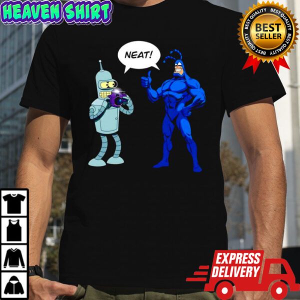 Ready to elevate your casual look to a whole new level? Embrace your inner geek with our Bender Bending Rodríguez and The Tick Neat cartoon shirt. Made for those who appreciate a touch of whimsy in their everyday attire, this shirt is more than just clothing; it’s a statement. Imagine the smiles and nods of approval you’ll receive from fellow fans when they see you rocking this unique piece. Don’t miss out on the opportunity to showcase your love for these iconic characters in a fun and fashionable way. Upgrade your wardrobe today and let your geek flag fly high with this must-have shirt!
