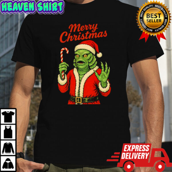 Black Lagoon Universal Monster wearing Santa Claus Merry Chrismas shirt, Classic, Women’s, Long Sleeved, Sweatshirt and Hoodie