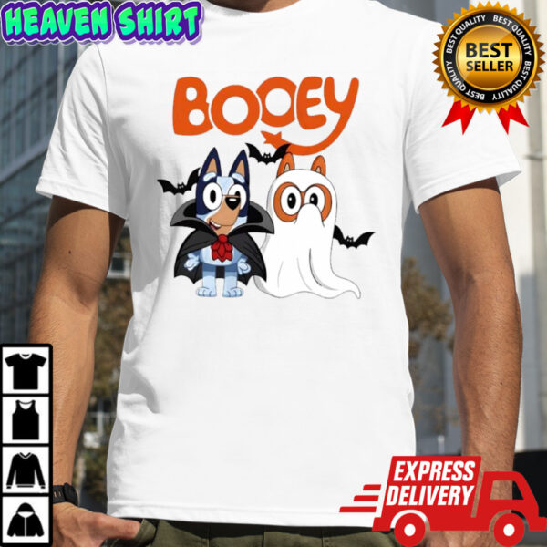 Looking to add a touch of whimsical charm to your Halloween wardrobe this year? Look no further than the Booey Halloween costumes Bluey and Bingo Ghost shirt! Designed for fans of the lovable Bluey and Bingo characters, this shirt is a must-have for anyone who wants to stand out on Halloween night. Picture yourself embodying the mischievous spirit of Bluey and Bingo, bringing smiles and laughter wherever you go. Crafted from high-quality, breathable fabric, this shirt ensures comfort all night long, whether you’re out trick-or-treating with friends or attending a spooky costume party.