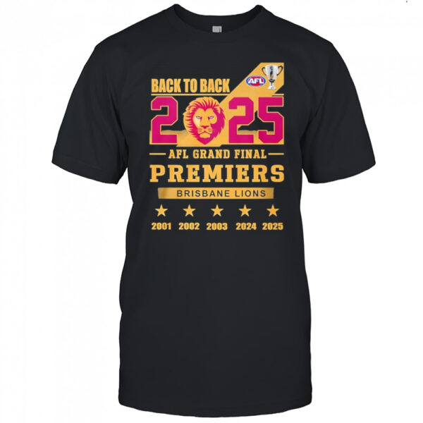 Brisbane Lions back to back AFL Grand Final Premiers 2025 logo shirt, hoodie, sweater, longsleeve and ladies t-shirt