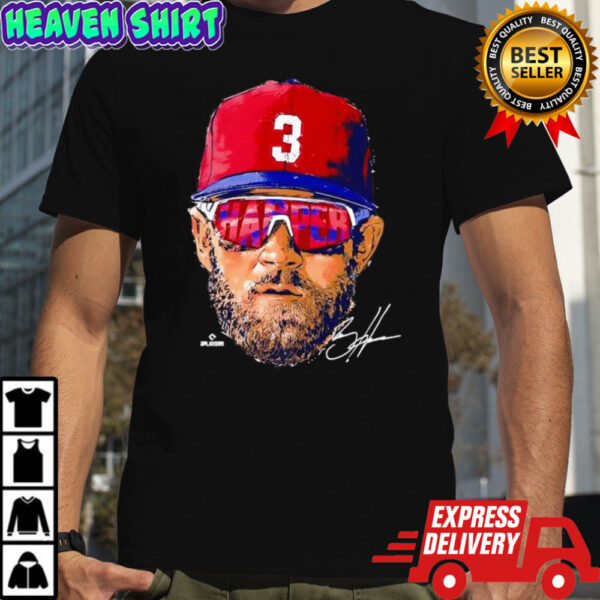 Get ready to show your support for your favorite MLB star with the Bryce Harper Philadelphia Phillies head graphic signature shirt. This exclusive shirt is not just a piece of clothing; it’s a statement of your unwavering dedication to the game and the iconic player. Featuring a striking graphic of Bryce Harper’s head and signature, this shirt lets you feel connected to the passion and energy he brings to every game. The high-quality material ensures comfort during long matches or casual wear, making it a versatile addition to any fan’s wardrobe.