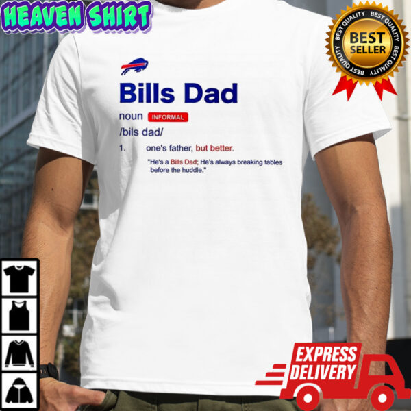 Looking for a special gift for the ultimate Buffalo Bills fan? Look no further than the Buffalo Bills Dad definition shirt. This shirt is not just another piece of clothing; it’s a declaration of love for both the Bills and being a dedicated dad. Crafted from premium cotton, this shirt boasts a comfortable fit perfect for game days or lounging at home. The vibrant colors and bold design make it a standout piece that will surely turn heads and spark conversations wherever you go.