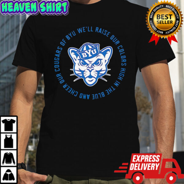 BYU Cougars we’ll raise our colors high in the blue and cheer our Cougars of BYU shirt, Classic, Women’s, Long Sleeved, Sweatshirt and Hoodie