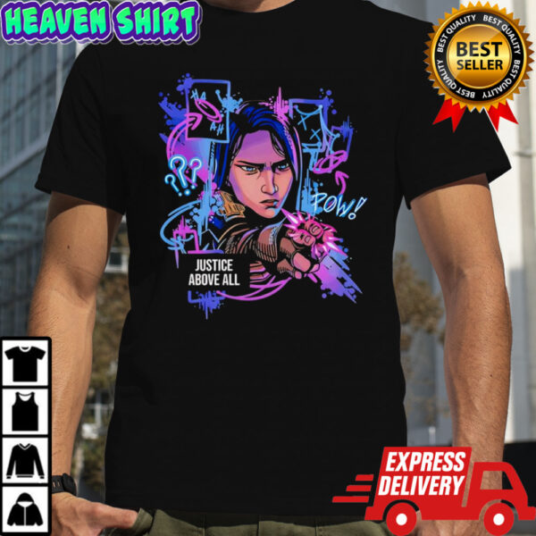 Unleash your inner warrior with the Caitlyn Kiramman Justice Above All graphic shirt. This stunning piece is not just a garment; it’s a statement of empowerment and resilience. The intricate design, featuring bold colors and powerful imagery, embodies the spirit of standing up for what is right. Crafted from premium, soft cotton, this shirt ensures both comfort and style, making it a versatile addition to your wardrobe. Whether you’re headed to a rally, meeting friends, or simply expressing your values, this shirt will be your go-to choice.