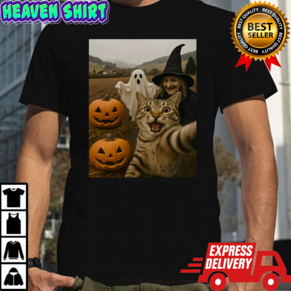 But wait, there’s more! Beyond its eye-catching design, this Cat Selfie with Witch & Ghost T-Shirt offers comfort and versatility like no other. Crafted with premium materials, it ensures a snug fit that feels as cozy as cuddling with your own pet. Whether you’re attending a costume party, browsing the pumpkin patch, or simply lounging around, this tee effortlessly combines spooky vibes with everyday wearability. Don’t miss out on the chance to add a dash of whimsy to your wardrobe this season!