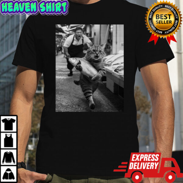 Cat Steals Fish Market Selfie Cat Meme T-Shirt, Classic, Women’s, Long Sleeved, Sweatshirt and Hoodie
