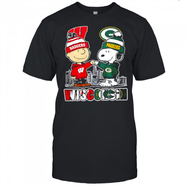 Charlie Brown and Snoopy wearing Wisconsin Badgers and Green Bay Packers logo shirt, Classic, Women’s, Long Sleeved, Sweatshirt and Hoodie