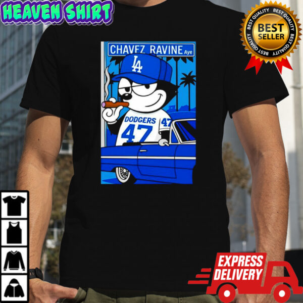 Elevate your streetwear game and show off your love for Chavez Ravine and the Los Angeles Dodgers with our eye-catching Chavez Ravine x Los Angeles Dodgers lowrider car graphic shirt. Whether you’re heading to a game at Dodger Stadium or simply strolling through your neighborhood, this shirt is a must-have for any fan. Donning this shirt isn’t just about fashion; it’s about embracing your heritage and sporting your team loyalty with flair. Don’t miss out on the opportunity to stand out from the crowd and represent your roots in style. Grab your shirt today and let your passion ride in the fast lane!