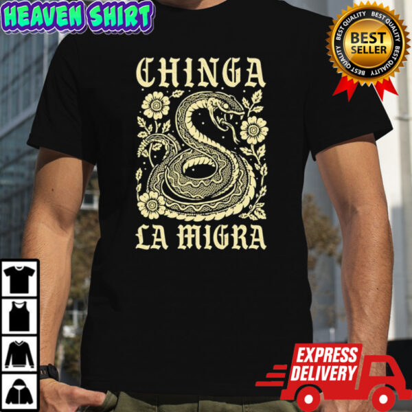 Unleash your rebellious spirit with the Chinga La Migra Snake graphic shirt, a bold statement piece that exudes attitude and defiance. This edgy tee features a striking graphic of a fierce snake intertwined with powerful imagery, symbolizing resilience and strength. Crafted from premium, soft cotton fabric, this shirt ensures both comfort and style. The vivid colors and intricate design make it a standout addition to your wardrobe, perfect for those who dare to stand out from the crowd.
