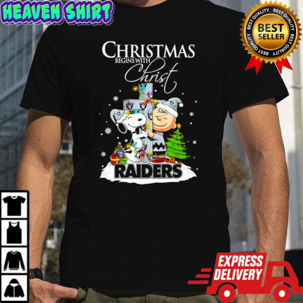 Elevate your holiday style and show off your team loyalty with the one-of-a-kind **Christmas begins with Christ Las Vegas Raiders x Snoopy and Charlie Brown shirt**. Whether you’re attending a Christmas party, watching a game with friends, or spreading holiday cheer, this shirt is a must-have for any football fan. Don’t miss out on the opportunity to stand out in the crowd with this festive and spirited apparel. Spread the joy of the season and share your passion for football and Christmas with this uniquely designed shirt. Make this holiday season unforgettable with a touch of team spirit and timeless cartoon charm. Get your shirt now and make your Christmas celebrations even more special!