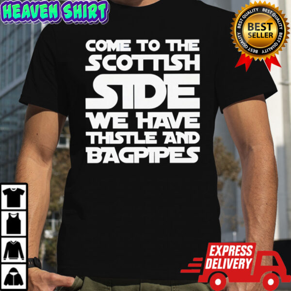 Come to the Scottish side we have thistle and bagpipes text shirt, Classic, Women’s, Long Sleeved, Sweatshirt and Hoodie