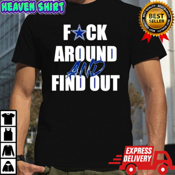 Embrace your inner fan spirit with our exclusive Dallas Cowboys Fuck Around And Find Out shirt! Crafted for die-hard Cowboys enthusiasts, this shirt is a bold statement piece that merges style and passion effortlessly. Made from premium cotton, it offers unmatched comfort for game days, watch parties, or everyday wear. The striking design showcases the team’s iconic colors and logo, ensuring you stand out in the crowd while rooting for your favorite team. Whether you’re at the stadium or cheering from your couch, this shirt is a must-have for any true Cowboys supporter.