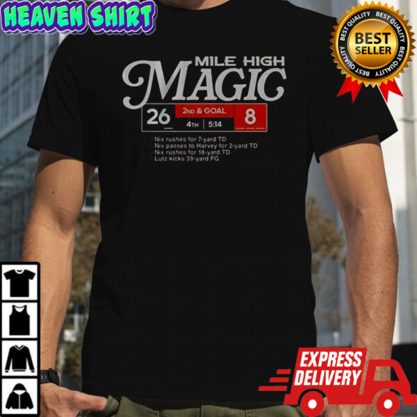 Embrace the Mile High Magic and stand out in the crowd with the Denver Broncos Football Mile High Magic T-Shirt. Beyond its eye-catching design, this shirt is a symbol of your dedication to the team. It’s more than apparel; it’s a reflection of your passion for Broncos football. Donning this tee isn’t just about fashion; it’s about connecting with a community of like-minded fans who share your enthusiasm for the game. So, why wait? Join the Broncos family today and let your Broncos pride shine with every wear of this iconic t-shirt!