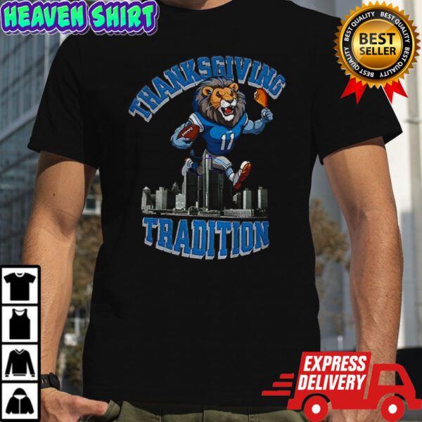 Are you ready to elevate your game day experience to a whole new level? Introducing the Detroit Lions Thanksgiving Game Day Tradition NFL Football shirt, the ultimate must-have for die-hard Lions fans. Picture this: it’s Thanksgiving Day, the aroma of a delicious feast fills the air, and you’re geared up in this exclusive shirt, showcasing your unwavering support for the Lions. Made from premium quality fabric, this shirt offers unmatched comfort, allowing you to cheer on your favorite team all day long without any distractions. The iconic Detroit Lions logo emblazoned on the front serves as a badge of honor, symbolizing your dedication to the team and its rich Thanksgiving game day tradition.
