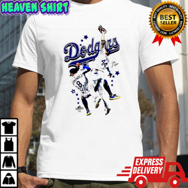 Elevate your fan status and own a piece of Dodgers history with the Dodgers players Hernández #8 and Pages #44 signatures graphic shirt. This shirt is not just apparel; it’s a statement. Imagine the envy of fellow fans when they see you sporting this exclusive piece showcasing the signatures of two beloved Dodgers players. Stand out from the crowd and celebrate your passion for the game in style. Make a bold statement, show your support, and wear your pride on your sleeve – quite literally. Don’t miss out on this limited edition shirt that embodies the essence of Dodgers fandom. Get yours today and let your fan spirit shine bright!