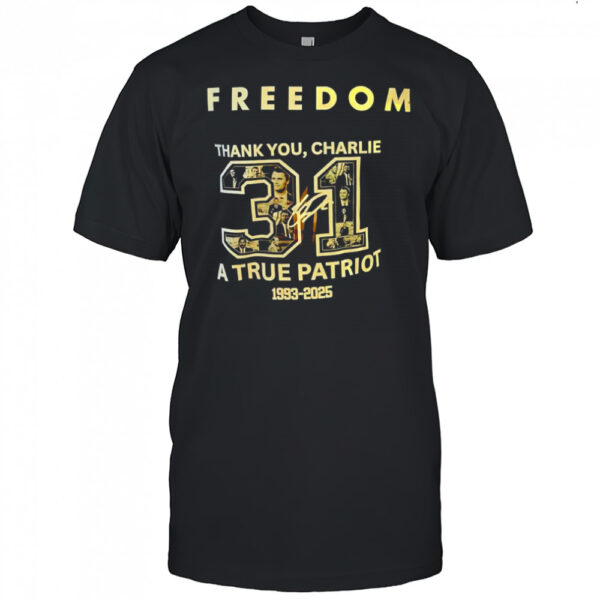Freedom thank you Charlie a true patriot 1993-2025 shirt, hoodie, sweater, longsleeve and ladies t-shirt