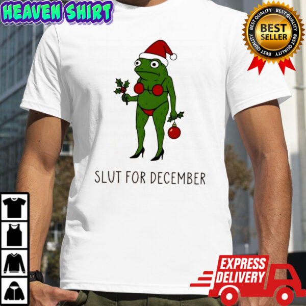 Get ready to hop into the holiday spirit with our exclusive Frog Christmas Slut For December shirt! Picture this: a whimsical design featuring a charming frog dressed in festive attire, spreading cheer and joy wherever it goes. This shirt is not just apparel; it’s a statement piece that captures the magic of December with a playful twist. Crafted from premium materials, this shirt is as comfortable as it is eye-catching, making it a perfect choice for all your seasonal celebrations.