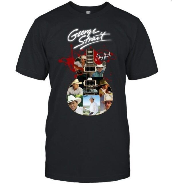 George Strait Collage Guitar Art T-Shirt