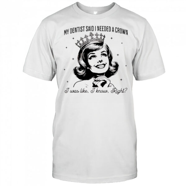 Girl my dentist said I needed a crown I was like I know right shirt, hoodie, sweater, longsleeve and ladies t-shirt