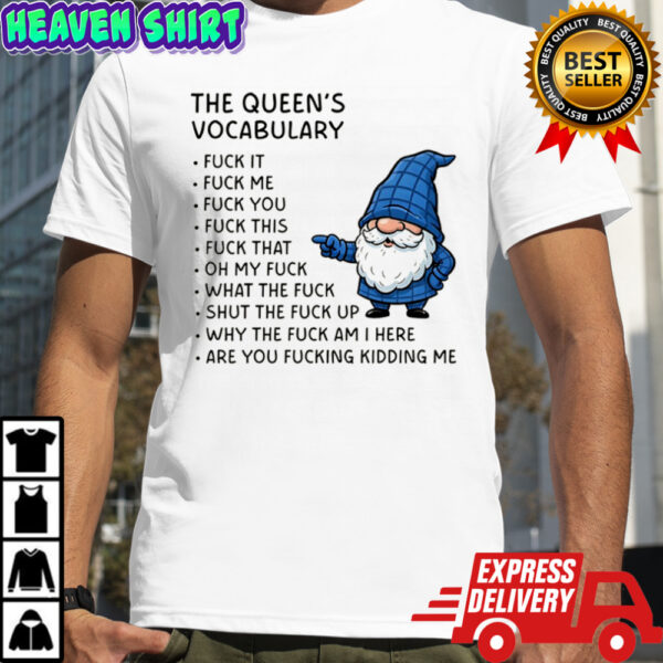 Imagine the confidence that comes with wearing a garment that screams defiance and empowerment. The Gnome the queen’s vocabulary fuck it fuck me fuck you fuck you fuck this fuck that oh my fuck shirt is more than an article of clothing; it’s a symbol of breaking free from societal norms and embracing your unique voice. Whether you’re looking to make a bold statement or simply express your inner rebel, this shirt is your perfect companion. Don’t just wear a shirt; wear your attitude!