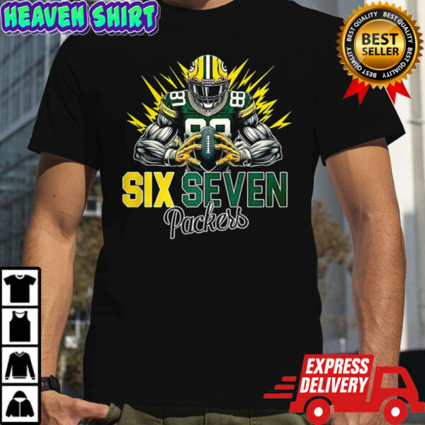 Elevate your game day experience with the ultimate fan gear – the Green Bay Packers football six seven graphic shirt. Stand out in the crowd and be the envy of fellow fans with this exclusive shirt that merges style with team pride seamlessly. The detailed design showcases the team’s legacy, celebrating every touchdown, every victory. Donning this shirt is not just about clothing yourself; it’s about embodying the Packers’ fighting spirit, resilience, and camaraderie. Get your hands on this must-have piece of fan merchandise now and gear up to cheer your team to victory in the most fashionable way possible! Commit to the green and gold – because your devotion deserves to be worn loud and proud.