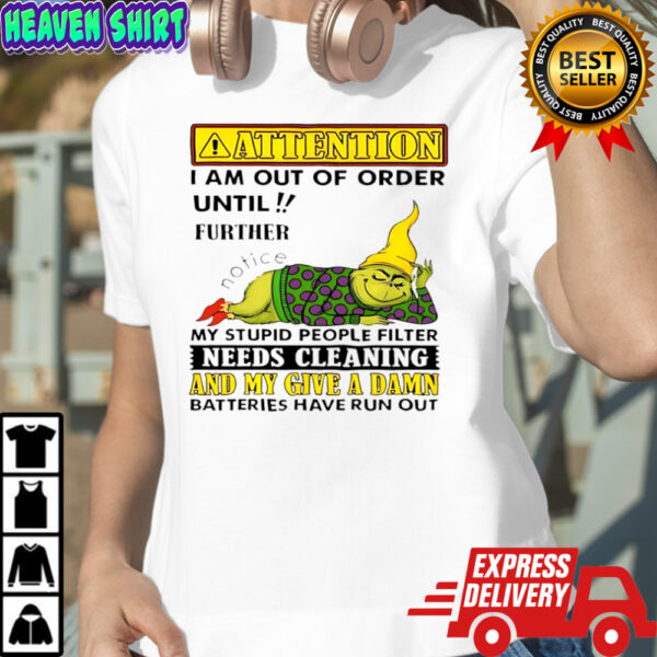 Grinch attention I am out of order until further notice my stupid people filter needs cleaning shirt