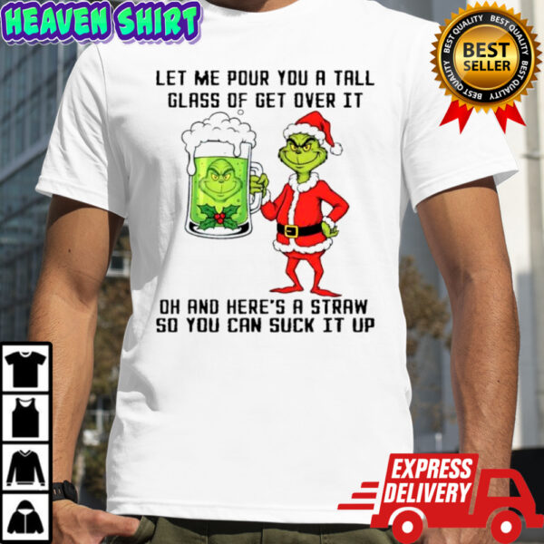 But wait, there’s more! Ready to take your wardrobe to the next level? Elevate your style game with our exclusive Grinch beer let me pour you a tall glass of get over it oh and here’s a straw so you can suck it up shirt. Whether you’re meeting friends for a casual hangout or hitting the town for a night out, this shirt is your go-to choice for making a statement. Don’t just wear a shirt; wear an attitude. Embrace positivity, radiate confidence, and let the world know that you’re unstoppable. It’s time to sip on that ‘get over it’ energy and conquer the day. Add this shirt to your cart now and let your fashion sense speak volumes!