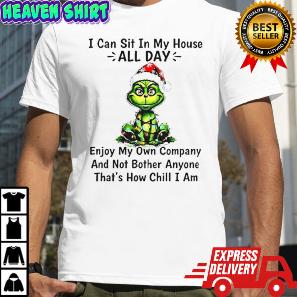 Grinch Christmas Light I Can Sit In My House All Day Enjoy My Own Company And Not Bother Anyone Thats How Chill I Am Shirt, Classic, Women’s, Long Sleeved, Sweatshirt and Hoodie
