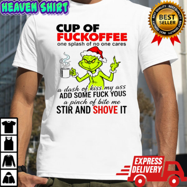 Grinch cup of fuckoffee one splash of no one cares shirt