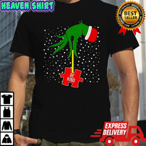 Grinch hand be kind puzzle Autism Awareness Christmas shirt, Classic, Women’s, Long Sleeved, Sweatshirt and Hoodie