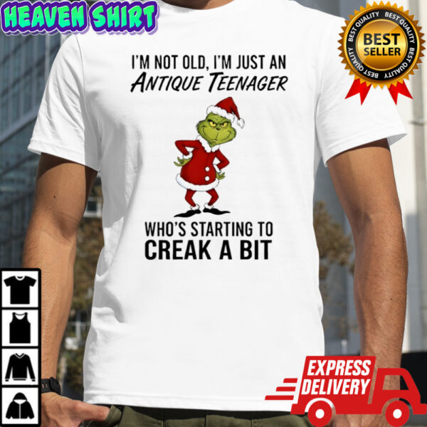 Embrace your inner rebel with the Grinch I’m not old i’m just an antique teenager who’s starting to creak a bit shirt. It’s more than just a shirt; it’s a declaration of independence from societal norms. Stand out from the crowd and show the world that age is just a number. Whether you’re young, young at heart, or simply rebellious, this shirt is the perfect addition to your collection. Don’t miss out on the opportunity to wear your attitude on your sleeve. Get your hands on the Grinch I’m not old i’m just an antique teenager who’s starting to creak a bit shirt today and let your youthful spirit shine through!