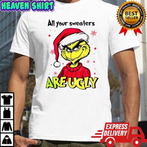 Grinch Santa hat all your sweaters are ugly Christmas shirt, Classic, Women’s, Long Sleeved, Sweatshirt and Hoodie