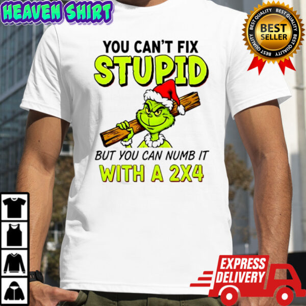 Grinch Santa hat you can’t fix stupid but you can numb it with a 2×4 shirt, Classic, Women’s, Long Sleeved, Sweatshirt and Hoodie