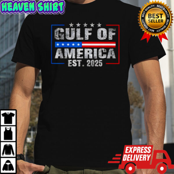 Embrace the spirit of the Gulf of America with the Gulf of America Est 2025 Vintage USA Coastal Patriot Shirt and make a statement wherever you go. Whether you’re strolling along the beach or gathering with friends for a barbecue, this shirt is the perfect conversation starter. Showcasing your love for the USA has never been easier or more fashionable. Don this unique piece, and let your style reflect your passion for the coastal charm of America. Elevate your wardrobe with this vintage gem and let your patriotism shine through. Order now and wear your pride on your sleeve!