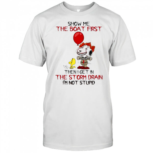 Halloween Snoopy and Woodstock show me the boat first then I get in the storm drain i’m not stupid shirt
