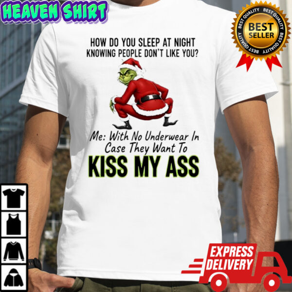 How do you sleep at night knowing people don’t like you me with no underwear in case they want to kiss Grinch ass shirt, Classic, Women’s, Long Sleeved, Sweatshirt and Hoodie