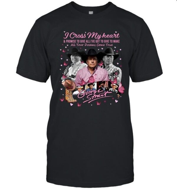 I Cross My Heart Promise To Make All Your Dreams Come True George Strait Pink Butterfly T-Shirt