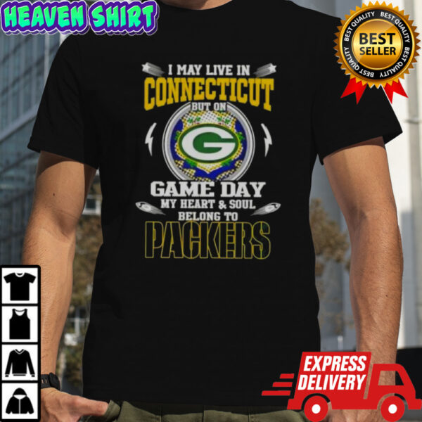 I May Live In Connecticut But On Game Day My Heart And Soul Belongs To Green Bay Packers T-Shirt, classic, ladies, long sleeved, hoodie and sweatshirt