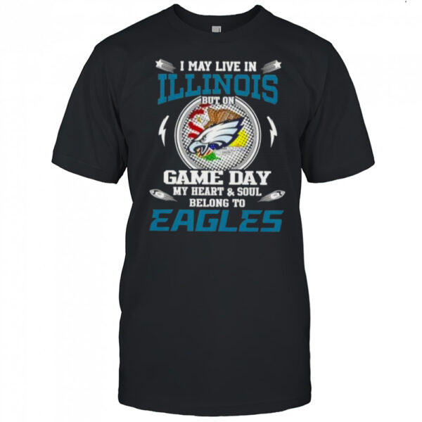 I May Live In Illinois But On Game Day My Heart And Soul Belongs To Philadelphia Eagles T-Shirt, hoodie, sweater, longsleeve and ladies t-shirt