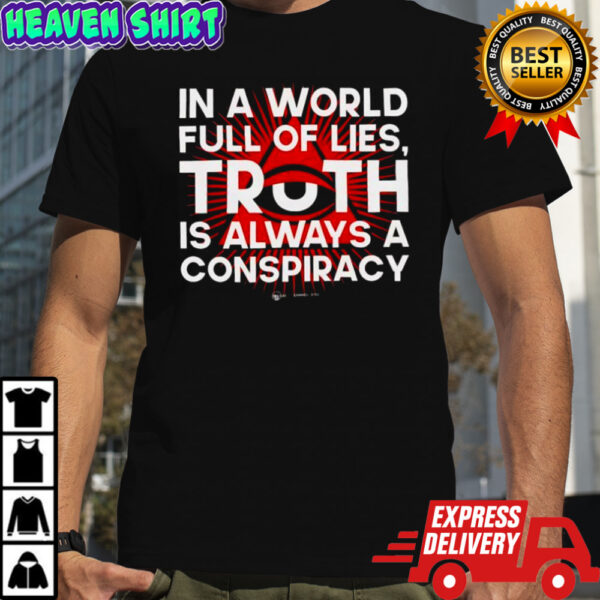 Dive into the extraordinary with our In a world full of lies truth is always a conspiracy eye pyramid shirt. This shirt is not just an apparel piece; it’s a statement, a declaration of your allegiance to the enigmatic truths that surround us. Crafted with the finest blend of fabric, it offers not just comfort but a touch of mystery that sets you apart. The eye-catching pyramid design symbolizes the layers of deception we navigate daily, reminding you to seek the hidden truths beneath the surface.
