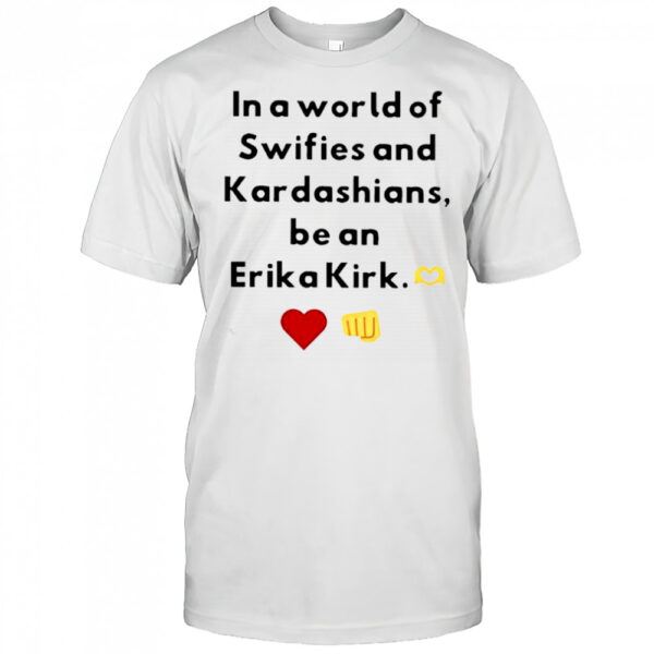 In a world of Swifies and Kardashians be an Erika Kirk icon shirt, hoodie, sweater, longsleeve and ladies t-shirt