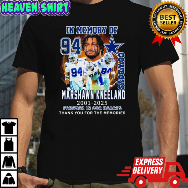 Embrace the spirit of Cowboys Marshawn Kneeland and pay homage to the unforgettable years with the In Memory Of Cowboys Marshawn Kneeland 2021-2025 Forever In Our Hearts Thank You For The Memories T-shirt. This shirt not only symbolizes respect and admiration but also serves as a reminder of the impact one life can have on so many others. Join us in honoring this remarkable individual by wearing this shirt with pride and sharing the memories that will forever shape our hearts. Order yours today and let the legacy of Cowboys Marshawn Kneeland live on through the stories we tell and the love we carry forward.